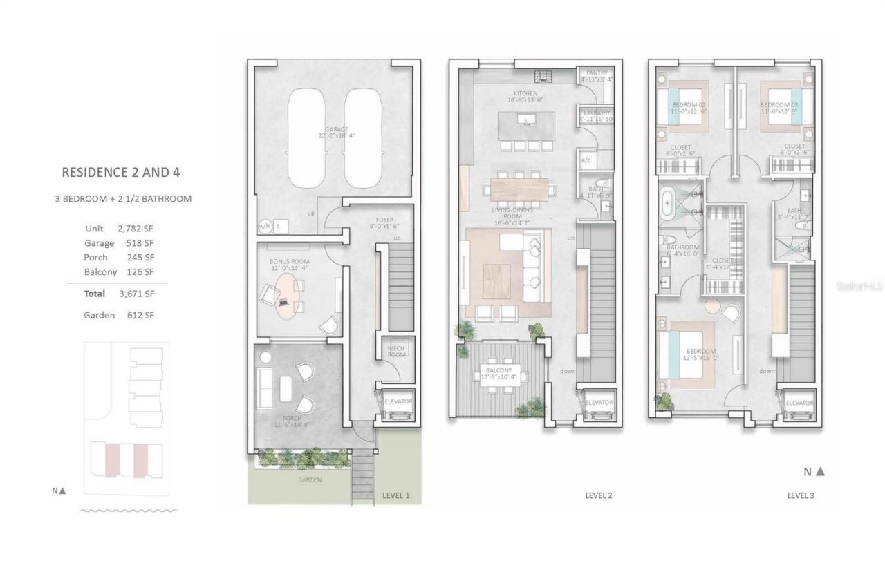 One or more photo(s) has been virtually staged. Under Construction. BRAND NEW CONSTRUCTION! Move-in this summer! 3-level, 3 Bedroom, 2.5 Bathroom, 2-Car Garage, Elevator townhomes at Serena by the Sea! Residence #4 is the LAST REMAINING WATERVIEW TOWNHOME, with south-facing exposure overlooking the water and future Serena boat dock/marina. Serena by the Sea residents enjoy 23,000+ square feet of resort-style amenities inside the gated-community, including 24/7 front-desk concierge, saltwater swimming pool & spa overlooking the intracoastal, daybeds, cabanas, outdoor shower, summer kitchens & entertaining areas, fire lounge, social room, catering kitchen, billiards & poker tables, pet park, Spa center with massage room, hair salon, sauna, tiki jacuzzi, locker room, state-of-the-art fitness center overlooking the Florida gulf coast sunset - and more! A perfect lock & leave seasonal getaway, or full-time residence in this serene location. Conveniently only minutes to world famous Clearwater Beach, downtown Dunedin, Tampa International Airport, St. Pete, Dunedin Blue Jays and Clearwater Phillies baseball Spring Training facilities, and all that the Tampa Bay area has to offer!