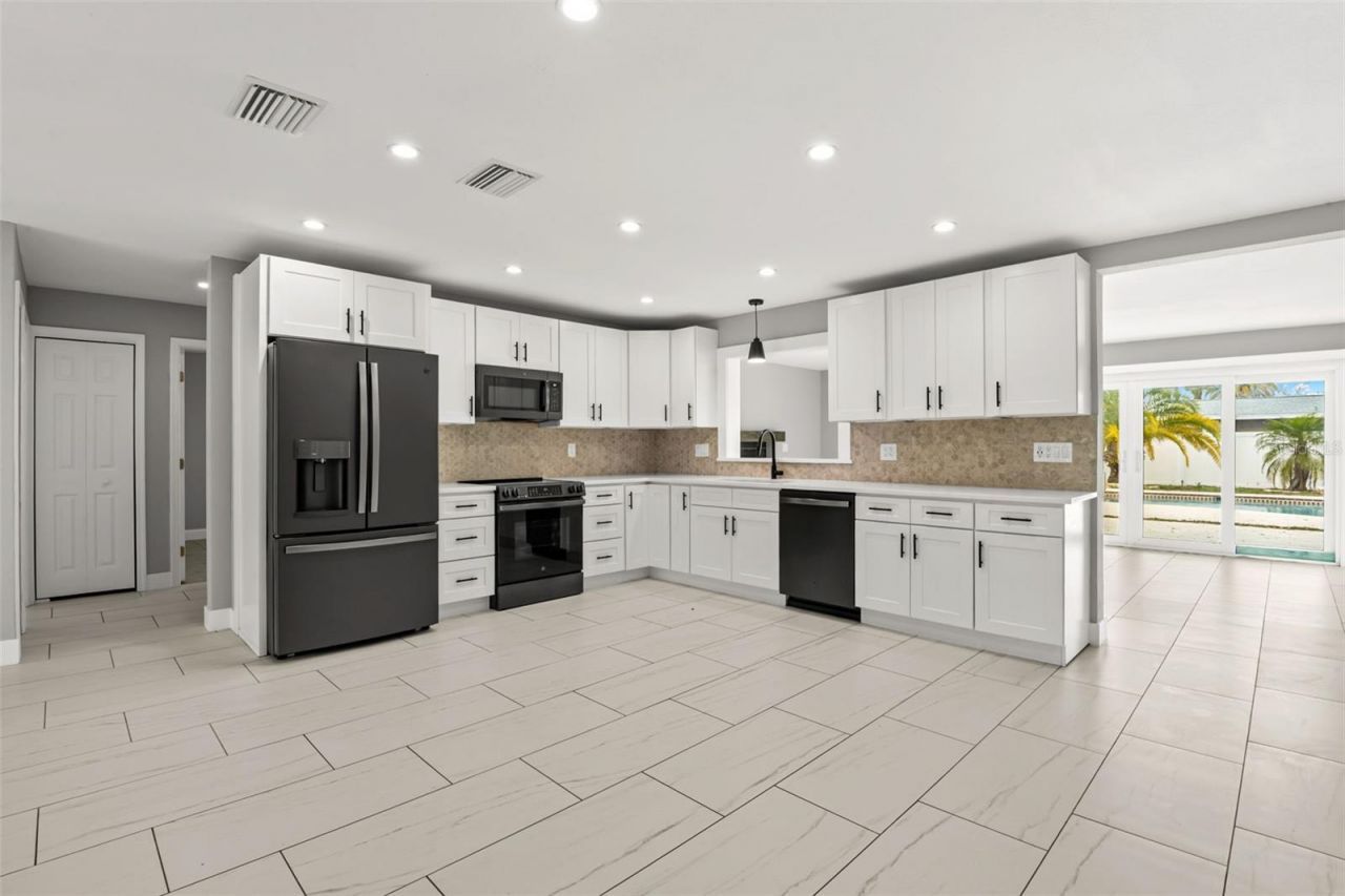 Located in the highly desirable Oakhurst Acres neighborhood with no HOA, this completely updated 3-bedroom, 2-bath home is offered with an open split layout: a newer roof (2023), HVAC (2017), impact windows throughout & resurfaced pool. Conveniently located near Seminole Town Center and just 7 minutes from Indian Shores Beach, this home has been remodeled from top to bottom. Tile & LVP flooring flows throughout, and the open-concept kitchen features white cabinets, granite countertops, and brand-new black stainless steel appliances. Leading from the kitchen, you'll find an additional living overlooking the pool. Off the main living area are two spacious bedrooms and a guest bathroom. The home also offers an irrigation system, a two-car garage, and a spacious backyard. This property is not located in a flood zone or evacuation zone, making it a secure and worry-free choice. Truly move-in ready, giving you peace of mind from day one.