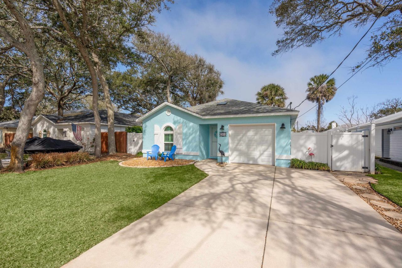 Tucked into the heart of St. Augustine Beach, along the area locals lovingly call the ???Golden Mile??? ??? where coffee shops, dining, shopping, and the shoreline all meet ??? 204 4th Street isn???t just a home, it???s a lifestyle measured in beach walks, morning coffee runs, and sunset bike rides to the shore. Step inside and you???ll immediately feel the difference. The vaulted ceiling creates an open, airy feel that adds character to the split floor plan. The open living area is welcoming and functional, grounded by sleek LVP flooring that???s both stylish and built for sandy feet. The layout flows effortlessly ??? three bedrooms, two full baths, and a one-car garage for beach gear, bikes, and boards. With a thoughtful split-bedroom floor plan, the kitchen and living area become the homes natural gathering place, offering great flow and connection while still providing privacy where it counts. Step through to the screened-in porch, and you???ll find the perfect in-between space: coffee at sunrise, dinner in the breeze, or a quiet place to unwind. The fully fenced backyard offers privacy, room for pets, and space to entertain under the palms ??? and with no HOA, you???ll enjoy making this property your own. The home also offers peace of mind, with some updates already completed, including the replacement of the HVAC (2019), water heater (2025), windows, and sliders ??? giving you more time to enjoy life and less time to worry about maintenance. Location is where this home truly shines. You???re just a short stroll from local favorites for coffee and shopping, restaurants, and live music, all within walking distance. The Atlantic shoreline is just moments away, offering morning surf sessions and evening walks along the sand whenever you please. This is beach living without compromise ??? no HOA restrictions, and a location that lets you park the car and live life to the fullest.