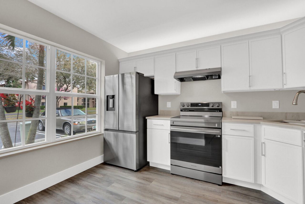 Beautifully renovated and centrally located 3-bedroom, 2.5-bath townhome. This home features a stunning updated kitchen with new stainless-steel appliances, modern cabinetry, quartz countertops, and an undermount sink. The home is light & bright, with a freshly painted interior and wood-look laminate flooring throughout. A new roof was installed in 2023, new hurricane impact windows & doors. New A/C unit. Residents can enjoy the sparkling community pool, scenic walking paths, and a beautiful lake with a fountain at its center. The spacious fenced patio provides the perfect space for entertaining, gardening, or relaxing outdoors. Conveniently located just minutes from parks, the Florida Turnpike, I-95, schools, restaurants, and supermarkets.