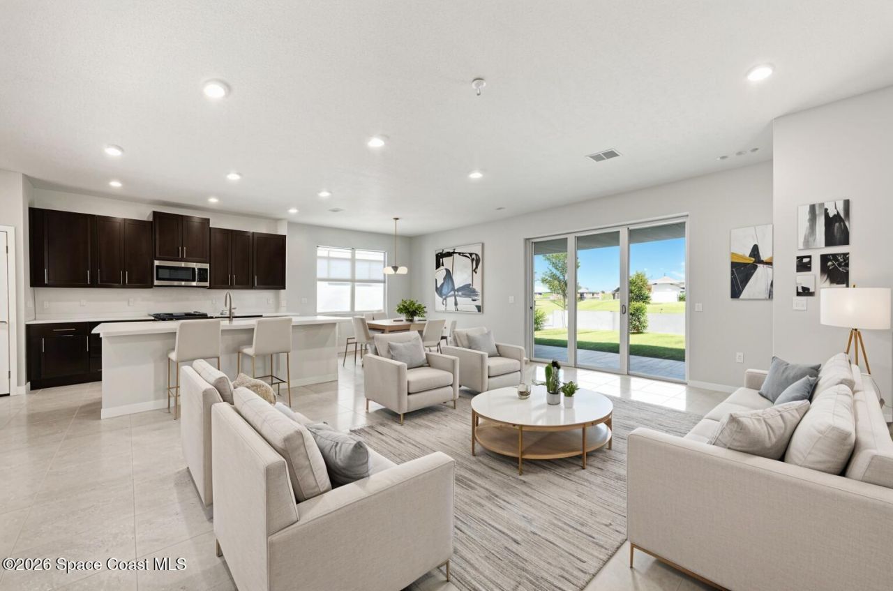 Beautiful never occupied 2025 Viera Built home in Crossmolina community with plenty space for a pool. This modern home has 3-bedroom, 3-bathroom and a dedicated flex room/office, plus tiles throughout. The bright, open floor plan flows seamlessly, highlighting a stunning kitchen complete w/quartz countertops, upgraded hardware, large walk-in pantry, and a café area. The great room is illuminated by 6 recessed wafer LED fixtures. Retreat to the spacious main bedroom, which features an oversized walk-in closet. Built with peace of mind, the home boasts impact-resistant windows, full smart-home features, transferable 2-year builder, 10-year structural warranty. As an owner in Crossmolina, youll have access to the community pavilion, playground and pool. The homes prime location puts you just minutes from the new Publix & Costco, as well as The Avenue shops, dog parks, the Brevard Zoo, and a variety of dining & golfing options. Less than 1 hour to Orlando & 30 minutes to Port Canaveral. For travel and day trips, its less than one hour to Orlando and about 30 minutes to Port Canaveral.