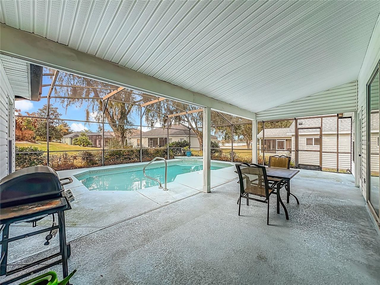 Welcome home to this beautifully updated 3-bedroom, 2-bathroom POOL HOME in the highly desirable 55+ community of Plantation at Leesburg. Offering an open and spacious floor plan, this home is designed for both comfortable everyday living and effortless entertaining. Step inside and you'll immediately appreciate the inviting layout, featuring a formal dining room and a generous family room with sliding glass doors that open to the screened-in pool area. The pool is equipped with solar heating-allowing you to enjoy a swim year-round-and features a pump that was replaced in 2025, providing added peace of mind for the new owner. The primary suite is a true retreat, offering ample space, a walk-in closet, and a private en-suite bath complete with granite countertops, a soaking tub, and a walk-in shower. A private door from the bedroom provides direct access to the pool area, creating the perfect indoor-outdoor flow. The upgraded kitchen is a standout, showcasing quartz countertops, elegant cabinetry, a luxurious backsplash, and a large pantry. The adjacent dinette overlooks the pool, making every meal feel like a getaway. The spacious living room also features sliding glass doors to the pool, providing abundant natural light and additional space for gathering with family and friends. Both guest bedrooms are generously sized and share a well-appointed bathroom with granite countertops and a tub/shower combination. Step outside to the screened pool and back porch area, where you can enjoy alfresco dinners, morning coffee, or evening cocktails while overlooking the sparkling water. With plenty of space for outdoor dining and entertaining, this private retreat is perfect for hosting friends and family or simply relaxing and enjoying Florida's beautiful weather year-round. The Plantation at Leesburg is an active 55+ community with several amenities including 3 club houses, three swimming pools, two 18-hole golf courses, lighted tennis courts, world class fitness centers, men's & women's wet and dry saunas in the fitness center, pickle ball, bocce ball, shuffleboard, softball/ baseball field, horseshoes, beautiful lakes, great fishing, drama clubs, computer clubs, broadway caliber shows, ballroom dancing, billiards, crafts, full-time activity directors, and Plantation Oaks Restaurant. As an added bonus Plantation is located close to shopping, dining, and all the amenities that The Villages has to offer. This home truly has it all - style, space, and the Florida lifestyle you've been dreaming of. Call for your private showing today!