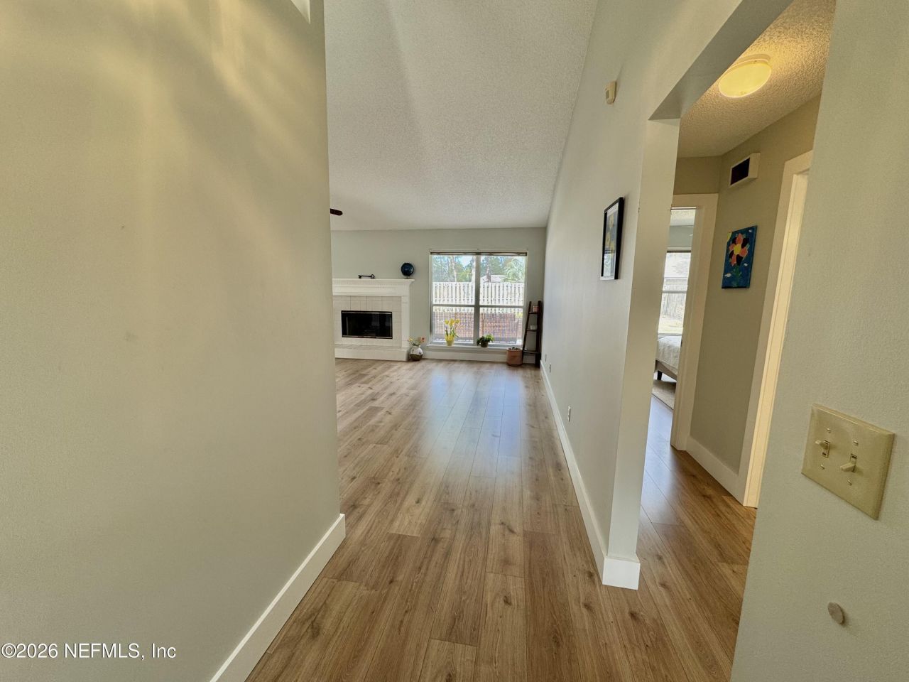 Serene gem tucked away in a quiet cul-de-sac within the highly sought-after Oak Point community in Julington Creek Plantation. This rare non-CDD home offers an inviting, open floor plan for you to make your own. The layout boasts a spacious living area, formal dining room, breakfast area, large closets, wood-burning fireplace, laundry room, attic, and two-car garage all on a meticulously landscaped 0.28-acre lot. Inside, floors are ceramic tile in the kitchen and dining areas, while the main areas were recently redone with high-quality, waterproof, scratch-proof hardwood. The beautiful patio in the backyard with an added pergola creates the perfect home for both entertainment and peaceful relaxation. Make this your home and experience convenience being so close to the top-rated schools, shopping centers, San Jose Blvd/SR 13, and major highways!