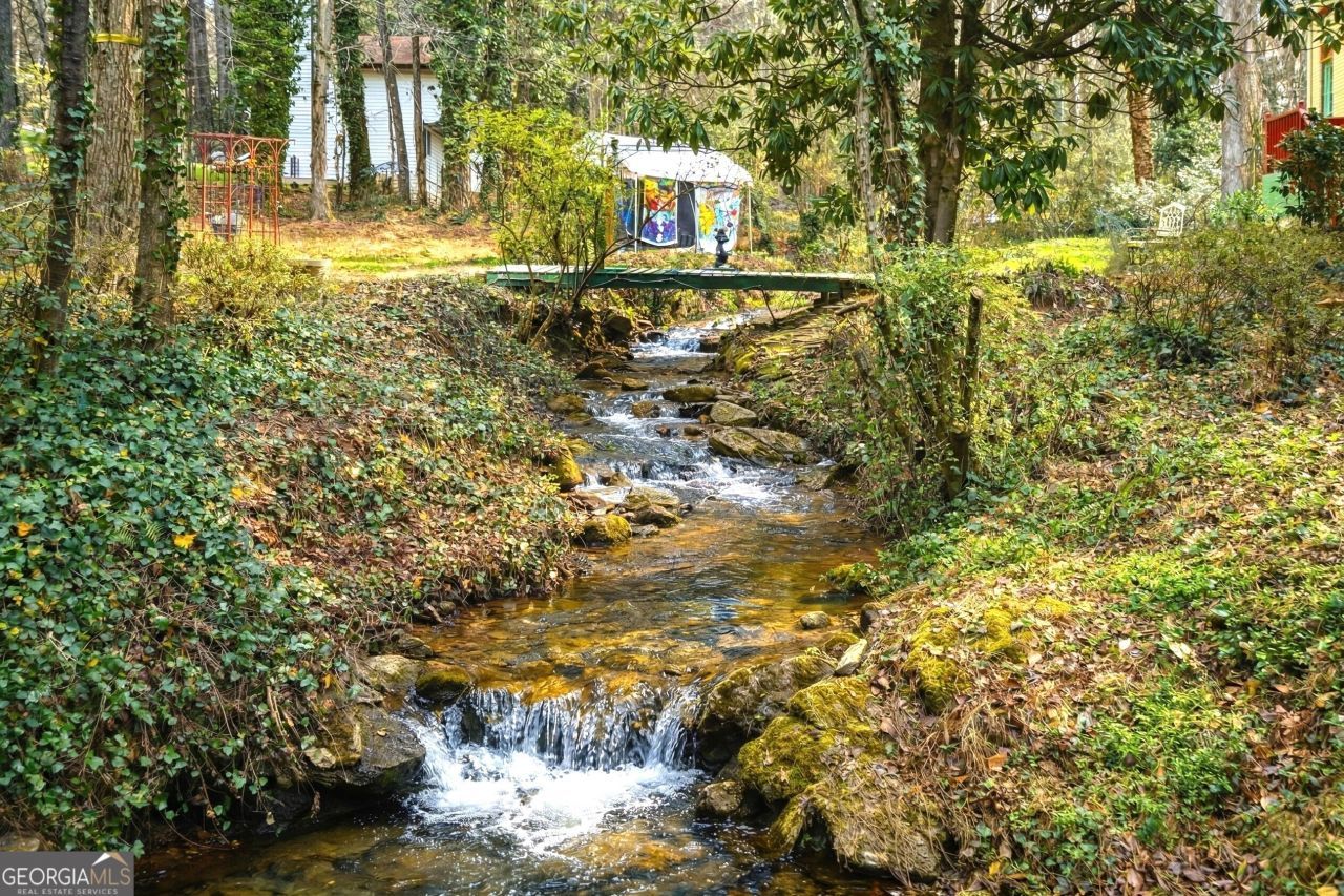 Rarely does a property offer this level of sanctuary and versatility so close to the heart of the city. Discover private creek frontage with no flood insurance required-a true 0.85-acre waterfront escape tucked into an established Roswell neighborhood just five minutes from the vibrant dining and shopping of Canton Street and Downtown Roswell. As a certified Wildlife Habitat, this land feels like a North Georgia retreat, where the gentle rhythm of a year-round babbling creek is both visible and audible from the home. A charming bridge crosses the gently flowing water to additional usable land, all dotted with mature trees and winding walking paths perfect for creekside yoga or quiet moments in nature. The property also includes established garden beds, fruit trees, and structures for chickens and quail. With no HOA restrictions, this is an entrepreneur's dream: work trucks, trailers, and equipment are welcome, with multiple outbuildings and storage sheds ideal for a workshop, contractor storage, or a hobby farm. The traditional two-story residence features warm hardwood floors, multiple sun-drenched living areas, a two-car garage, and a spacious covered back porch overlooking a fenced pet area. Storage is effortless with a walk-in side attic offering excellent storage and future expansion potential. Located near Vickery Creek Park and the Chattahoochee River, this property isn't just a home-it's a rare lifestyle opportunity for those seeking space, privacy, and a deep connection to nature without sacrificing the convenience of Roswell living. There is a special energy here that must be experienced in person.