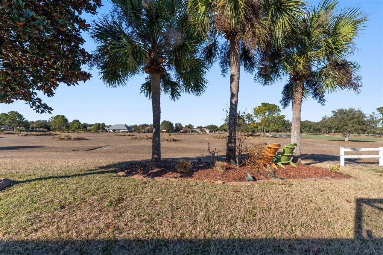One or more photo(s) has been virtually staged. Golf Course Home | Premium Lot | Expanded Sterling in Candler Hills at On Top of the World - Stunning golf course and water views overlooking an approximately 8-acre dry retention pond set the stage for this expanded Sterling model located on a premium lot in the sought-after Candler Hills neighborhood of On Top of the World. This fee-simple home also has the CDD bond paid off, helping keep ownership costs lower. Overlooking the lush fairway and open space, this golf course home offers privacy, serenity, and beautiful scenery from nearly every main living area. Offering nearly 2,300 sq. ft. of living space, this home features 3 bedrooms, 2 bathrooms, a den/office with door, formal dining room, living room, and a grand great room in a bright open split-bedroom floor plan. The great room, living room with octagon tray ceiling, kitchen, breakfast nook, office/den, and primary suite all capture panoramic golf course views. Ceiling heights reach up to 11 feet and are enhanced by crown molding and custom finishes. The updated kitchen features granite countertops, tile backsplash, pull-out cabinetry, a large pantry, upgraded stainless steel appliances, and a solar tube skylight that fills the space with natural light. Flooring includes solid oak wood and ceramic tile in the main living areas, luxury vinyl in the den/office, and carpet in the guest bedrooms. Additional features include a gas fireplace outlet in the great room (ready for a future fireplace) and hideaway screen doors on the front entry and primary bedroom doors leading to the lanai for fresh air and seamless indoor-outdoor living. The spacious owner's suite offers a private sitting area/second office, two walk-in closets, a large updated ensuite bath, and direct patio access with golf course views. Two additional bedrooms and a full bath are located on the opposite side of the home for added privacy. Recent improvements include: New roof (2025), New water heater (2025), New dishwasher (2025), Refrigerator (2023), Microwave (2023), Gas range (2023), HVAC (2019), newer garage door, and epoxy garage floor coating. The seller is also offering a one-year home warranty for the buyer's peace of mind. Outdoor living includes a north-facing stone-paved lanai, an enclosed Carolina room with sliding panels, and a large open birdcage patio with sealed pavers-perfect for entertaining or relaxing while enjoying the golf course setting. Additional features include an oversized extended garage, ceiling storage above the garage, water softener, upgraded irrigation system, French drain, and newer picture windows. Candler Hills is a private gated luxury golf community offering three golf courses, indoor and outdoor pools, two fitness centers, tennis, pickleball, racquetball, billiards, game rooms, and a Cultural Arts Center. Residents enjoy live music, dining, shopping, medical facilities, and golf-cart access to local conveniences. On Top of the World is ranked among the Top 50 Master-Planned Communities in the United States by Where to Retire Magazine. The seller is currently completing a few cosmetic updates. In Bedroom 2, the built-in twin headboards are being removed and the wall repainted. In the office/den, decorative wall boards are also being removed and the walls repainted. This exceptional home delivers the perfect blend of luxury, comfort, and the ultimate active-adult lifestyle. Move-in ready-so you could be living your Florida dream in as little as 30 days.