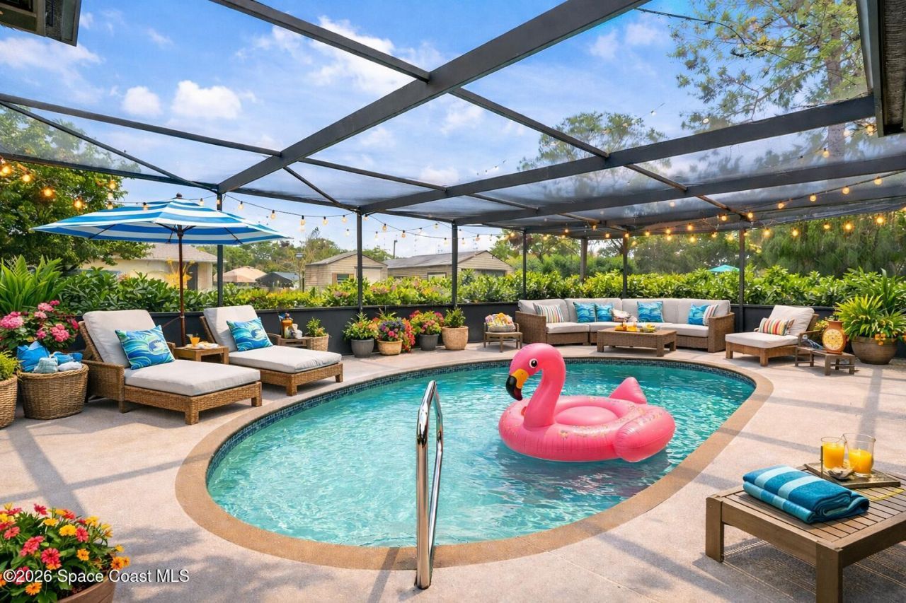 COMPLETELY REMODELED POOL HOME ON NEARLY HALF AN ACRE!! This 3/2 pool home is in one of Brevards most coveted neighborhoods, Lockmar Estates. With its open concept floor plan, bathed in natural light, this space is perfect for entertaining. The heart of the home is the great room, a space that connects the updated kitchen complete with newer appliances and crisp white shaker style cabinetry, to the separate living rooms. The split floor plan has the primary suite located off of the living area, granting privacy and boasting a spacious walk-in closet and an ensuite with a large shower. The remaining two bedrooms share a full bath on the other side of the home. The rear of the home holds a screen in porch that blends to the lanai covered pool. Enjoy the pool all year round with the new electric pool heater. The outdoor bonuses continue with an expansive back yard with two sheds. Close to beach/river access as well as PSFB along with many major retail stores, restaurants & more nearby.
